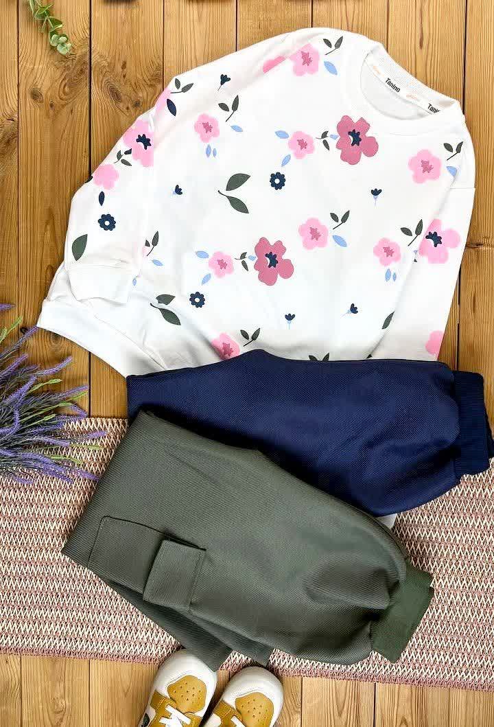لوز و شلوار رو جدا جدا ست کن،۸۰۰ تا ۹۰۰ هزینه کن❌❌بلوز دورس پنبه با شلوار کتان گرم بالا کجراه #دخترانه❤️🪡سایز:۵۰،۵۵🪡قیمت خوبشم فقط بخر۳۹۸ تومان🔥لباس کودک راحیل💖👫